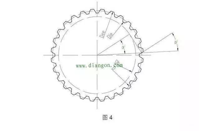 圖4為漸開線花鍵軸截面尺寸,特點(diǎn)為:
