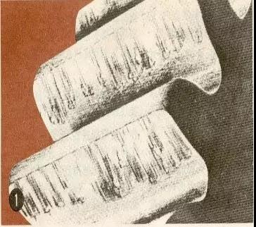 圖43:齒輪表面的腫包、芒刺和隆起,是出現(xiàn)在精加工后的齒輪由于放置粗心,使齒的棱邊碰傷而致
