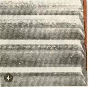 圖4:劃傷的早期階段在齒輪上部顯示出斑點(diǎn)的覆霜似樣式,損傷在這個(gè)階段是輕微的