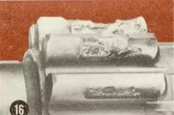 圖16:齒面產(chǎn)生嚴(yán)重的麻點(diǎn)和剝落,在相鄰齒面上齒面被徹底損壞